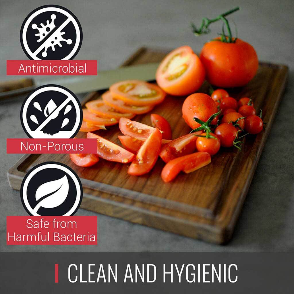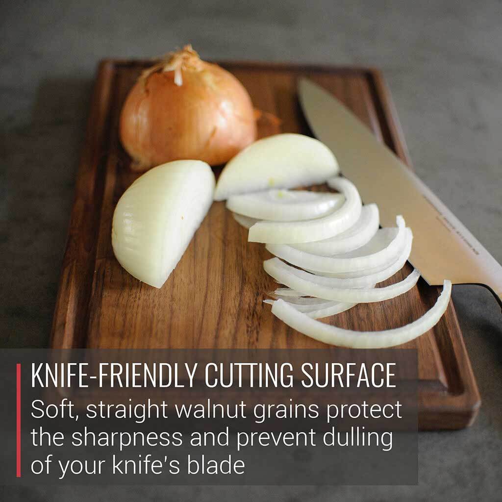 Comes with a handy juice catching drip groove on one side