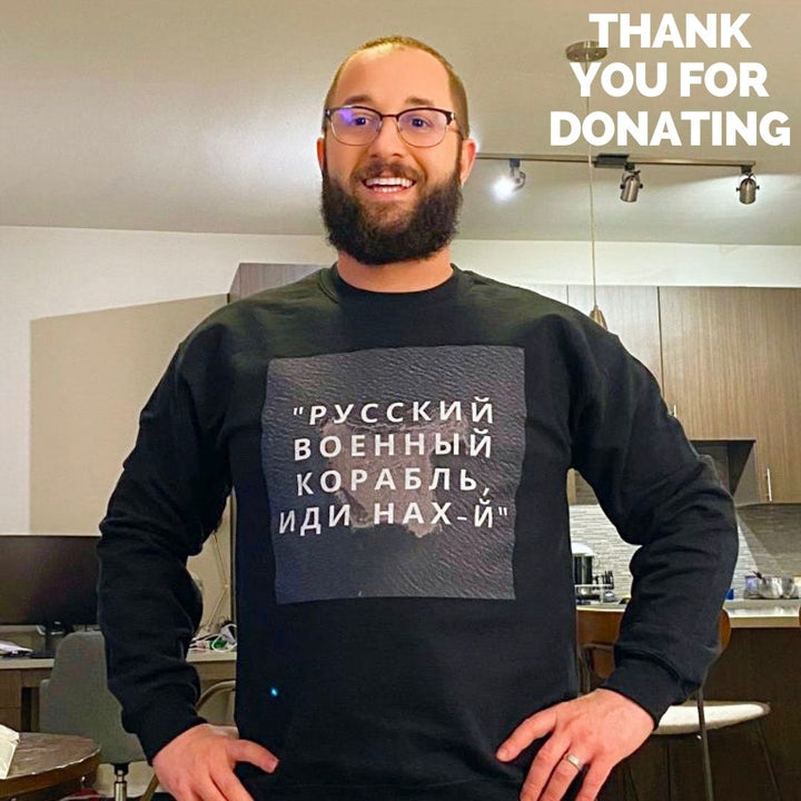 On February 25th, in between tears, I figured out a way I could help. I began to design Ukrainian-inspired tees, sweatshirts, and accessories. A few days later I met a few Ukrainian artists online and started collaborating with them. We created designs that ask for Ukrainian Freedom, ask to stop Putin, show geometrical size comparing Ukraine and Russia, and were inspired by the Snake Island 13.