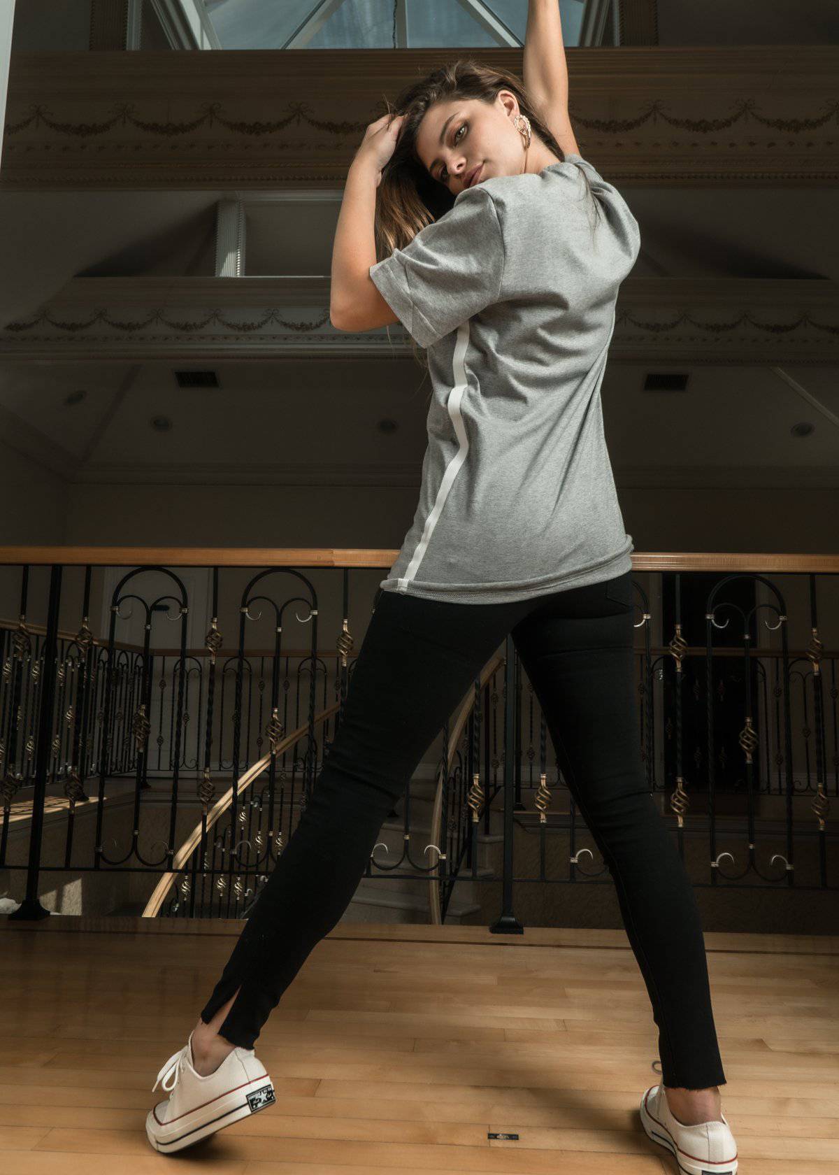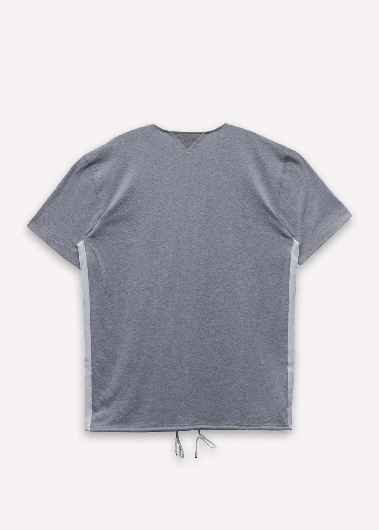 Short sleeve crewneck tee with tape detail on side seams, drawcord at hem and logo print on chest.