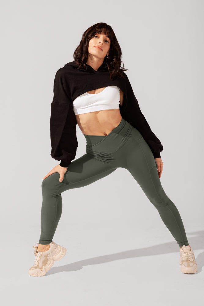 High Rise Crisscross Hourglass Legging™ with Pockets - Dark Sage by POPFLEX®