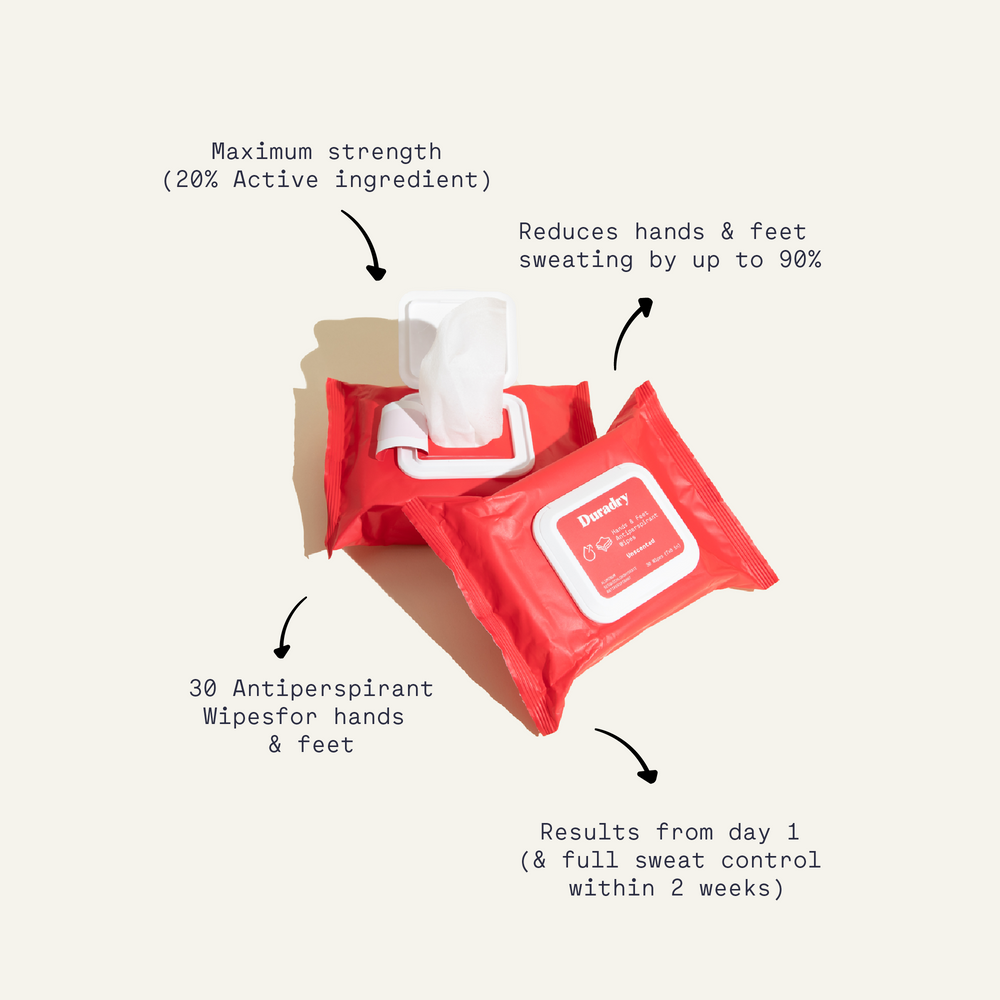 Duradry Antiperspirant Wipes for Hands & Feet by Duradry