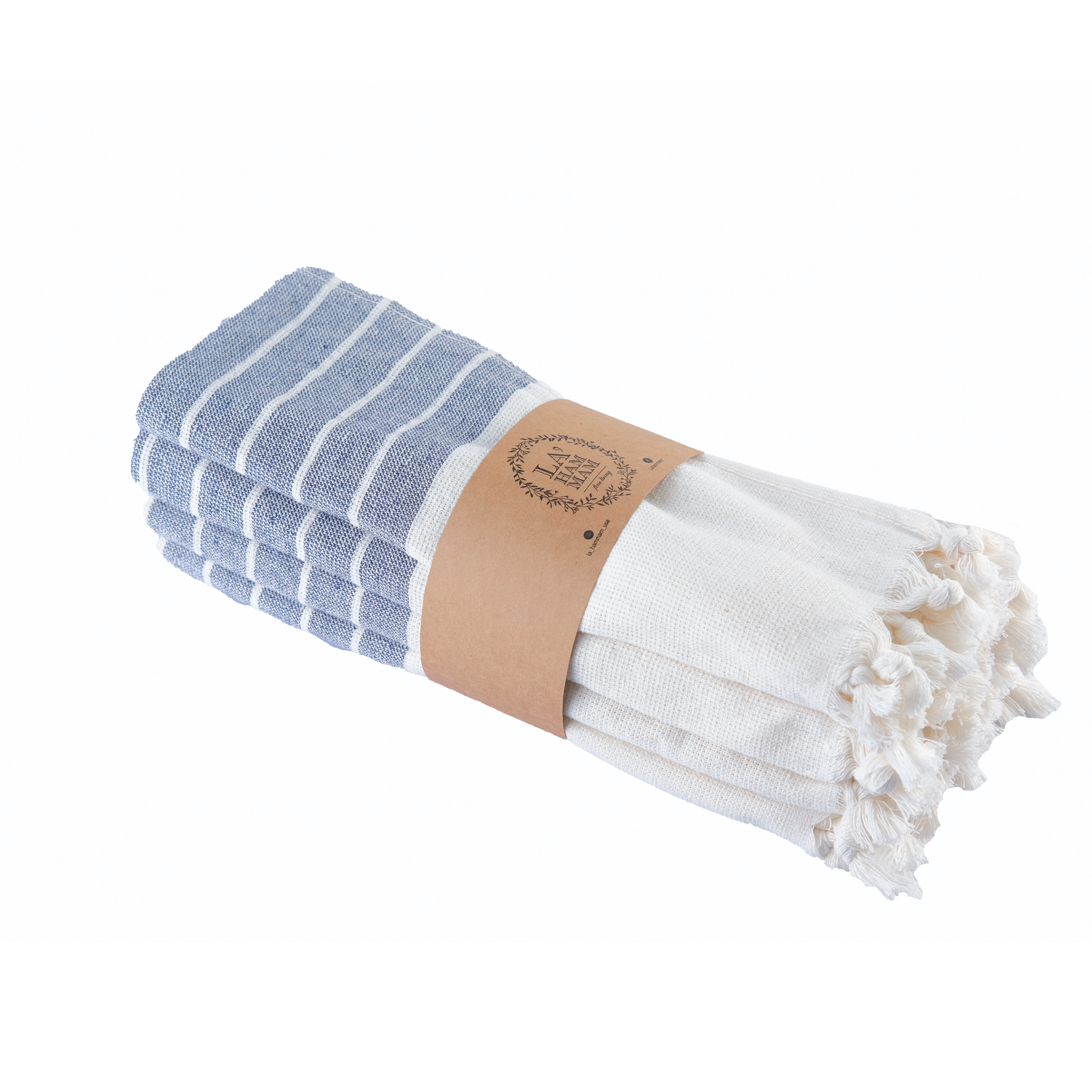 Enjoy La'Hammam's unique cotton Turkish peshtemal hand or kitchen towels for your everyday use, in the kitchen or as your go-to hand towel. These cotton towels can also be used as placemats, for cooking, as a hand towel, dish towel, kitchen towel, hair towel, face towel and gym towel. Available in white and stripes with an accent color of your choice and handmade white fringes.