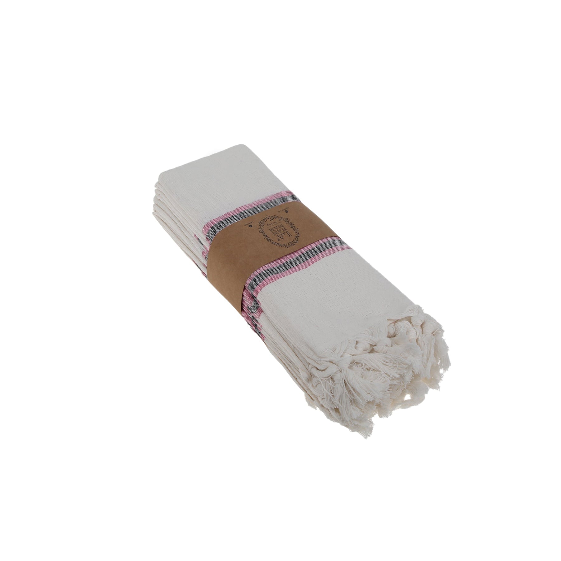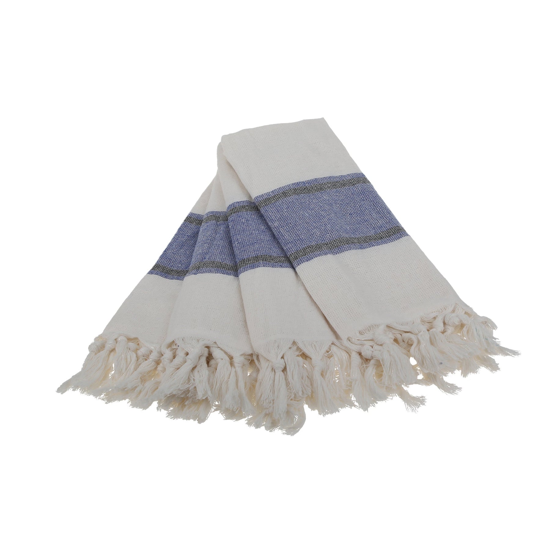Enjoy La'Hammam's unique cotton Turkish peshtemal hand or kitchen towels for your everyday use, in the kitchen or as your go-to hand towel. These cotton towels can also be used as placemats, for cooking, as a hand towel, dish towel, kitchen towel, hair towel, face towel and gym towel. Available in white and blue stripes with an accent color of your choice and handmade white fringes.