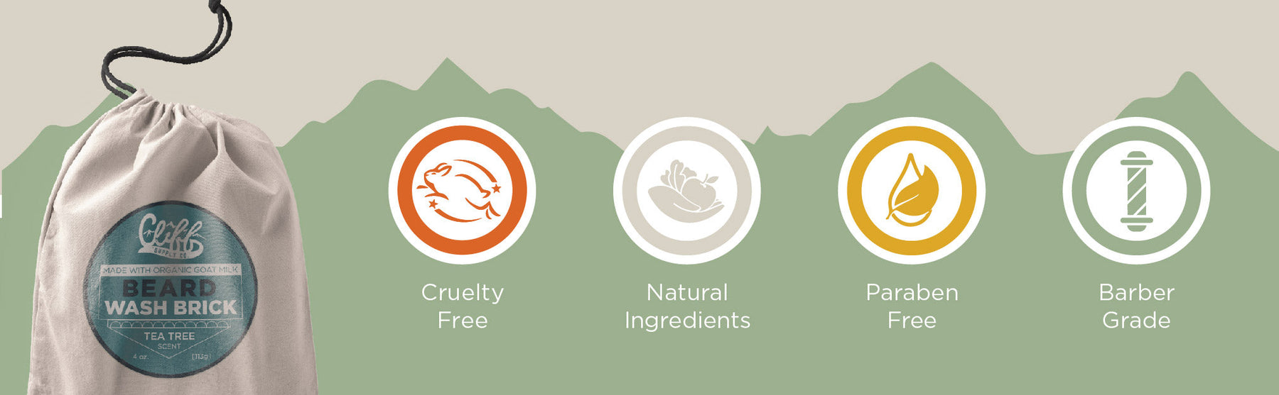 Cliff Supply's Tea Tree Beard Wash Brick, with Organic Goat Milk, provides a face conditioning, beard thanking, clean up. Each all-organic goat milk based brick lathers up nicely and rinses clean, leaving your face feeling soft and healthy.