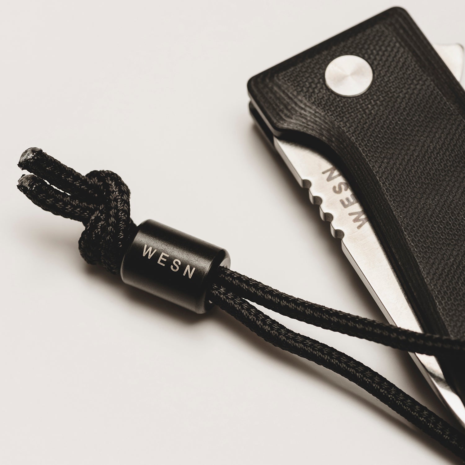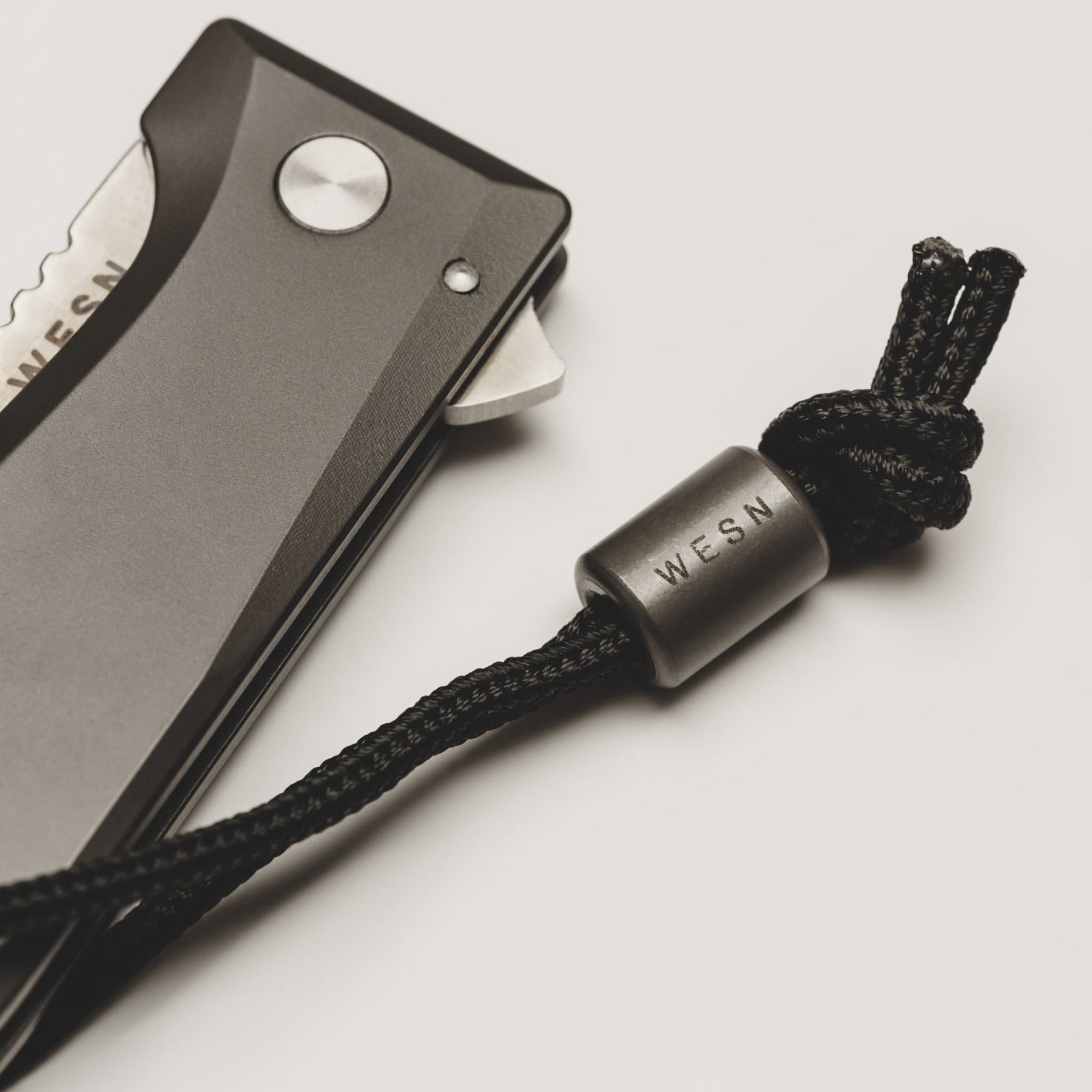 The WESN LB is a stainless steel lanyard and bead that is comfortably suited to fit through the small hole near the bottom of your WESN knife. Not only does the LB add a bit of flare to your WESN blade, it allows for easy retrieval from any bag, pocket, or space you may set your knife.