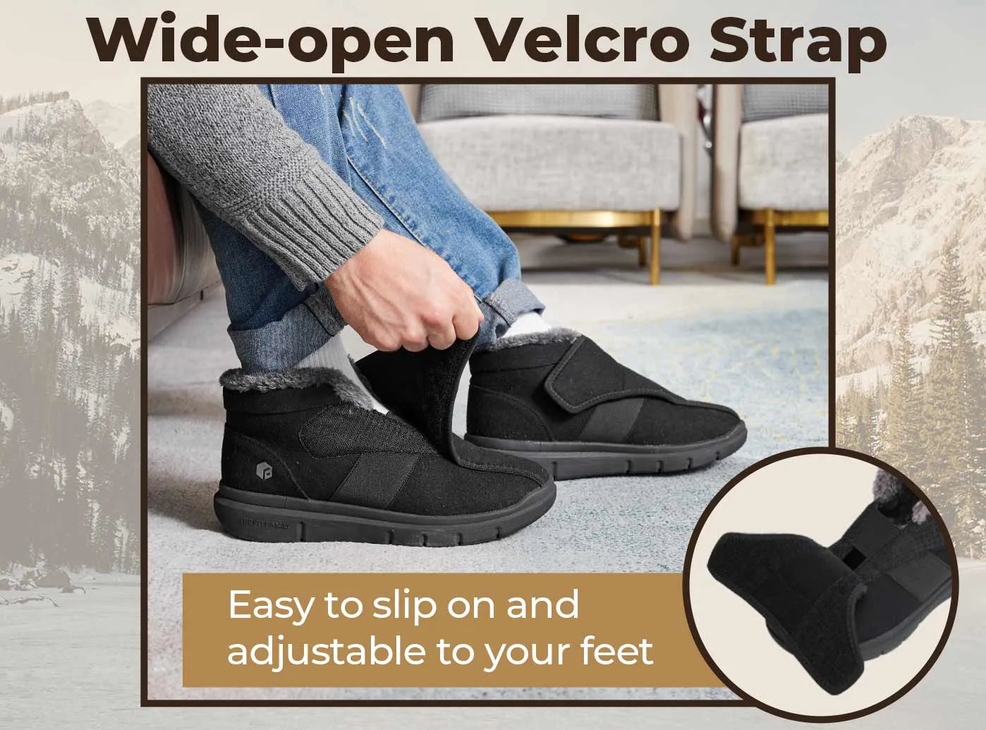 Introducing the EasyTop® Diabetic Winter Boots V1 - the epitome of warmth, style, and comfort for the chilly months ahead. Embrace the cozy embrace of a high top design with plush inner lining that keeps your feet toasty even on the coldest days. The Velcro strap closure with a wide open faux Cashmere upper design, fully adjustable to ensure no squeezing or rubbing your feet while putting it on and off. Step confidently on any terrain with the high rebound EVA sole, providing unmatched cushioning and support, and rest assured with slip-resistant traction that keeps you steady on snowy and slippery surfaces
