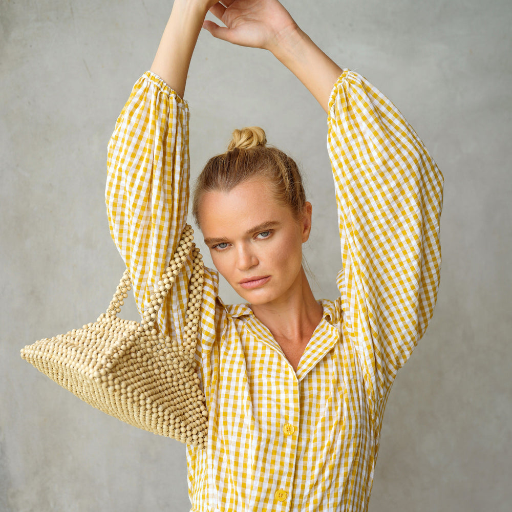 Pyramid Beaded Tote Bag in Nude Beige by BrunnaCo