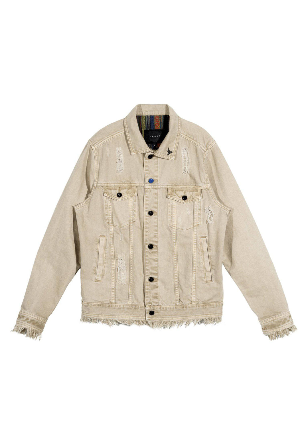 Konus Men's Frayed Cuffs Denim Trucker Jacket in Khaki by Shop at Konus