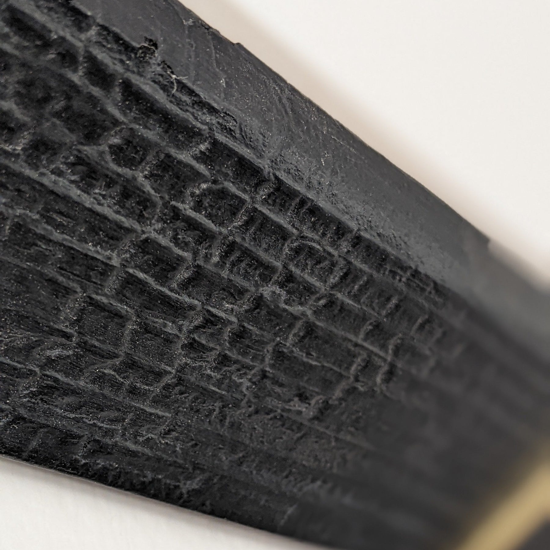 Torched black & natural = torched with black alligator texture & natural wood with tung oil