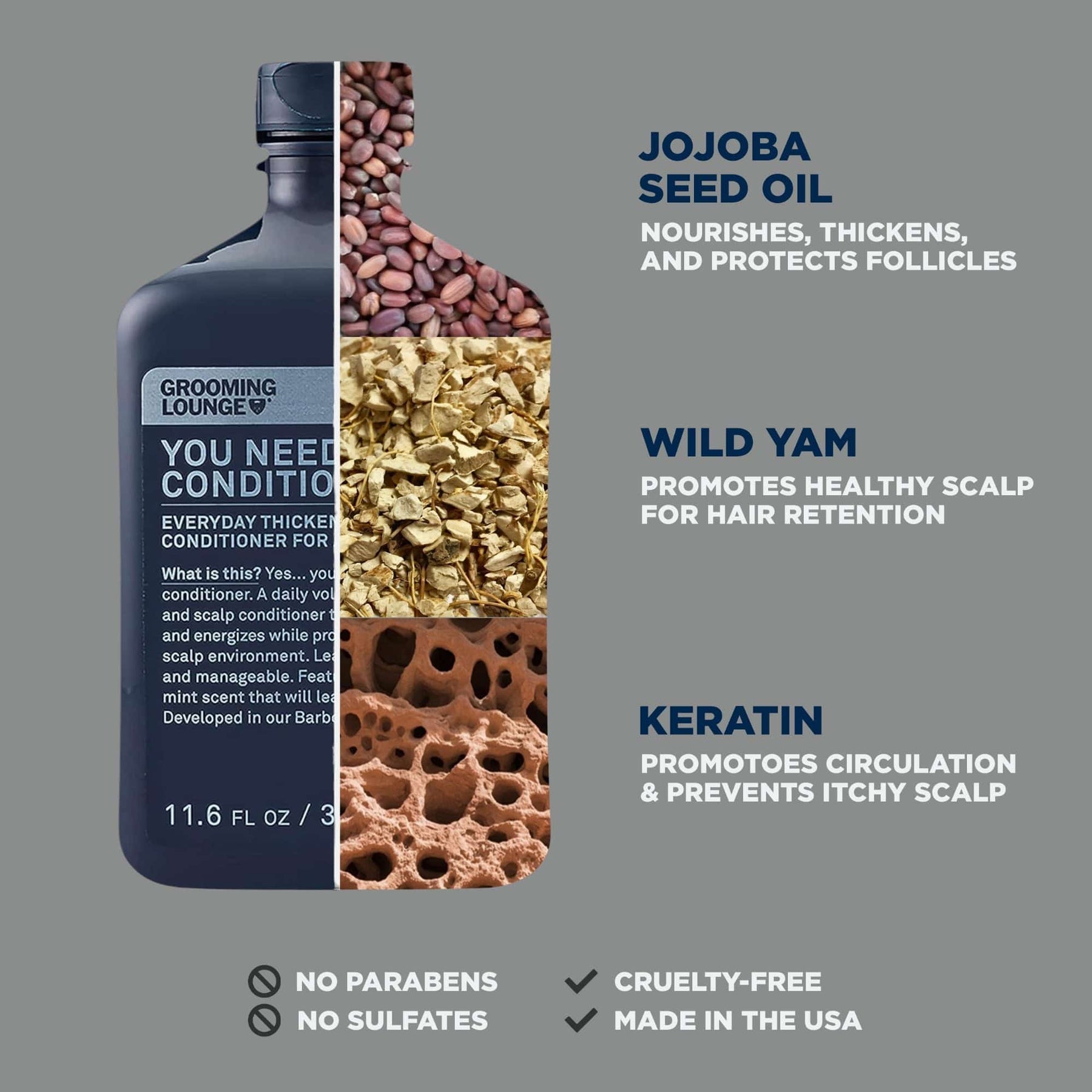 Grooming Lounge You Need ConditionerYes, you do need conditioner. A daily volumizing hair and scalp conditioner that moisturizes and energizes while promoting a healthy scalp environment. Leaves hair soft and manageable and features a great mint scent that leaves scalps tingling. Developed in our Barbershop by real Barbers and other smart humans.