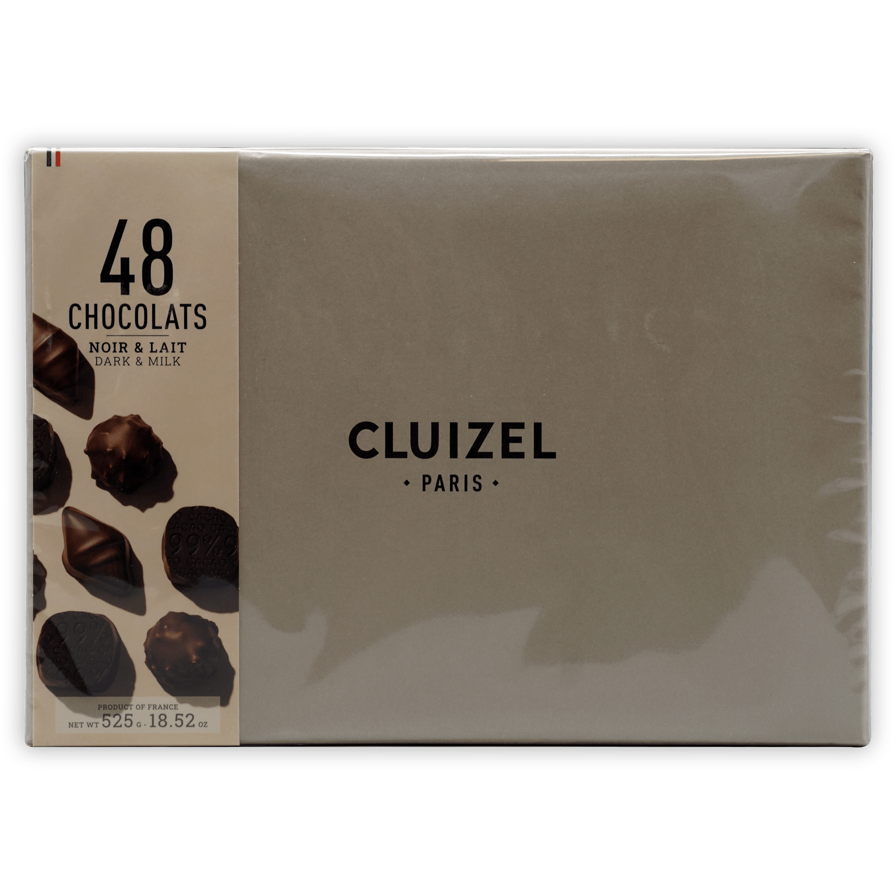 48 assorted gourmet milk and dark chocolate truffles, ganache, caramel, praliné (almonds and hazelnut), and Single Estate Plantation chocolate. All decorations and colorings are 100% natural.