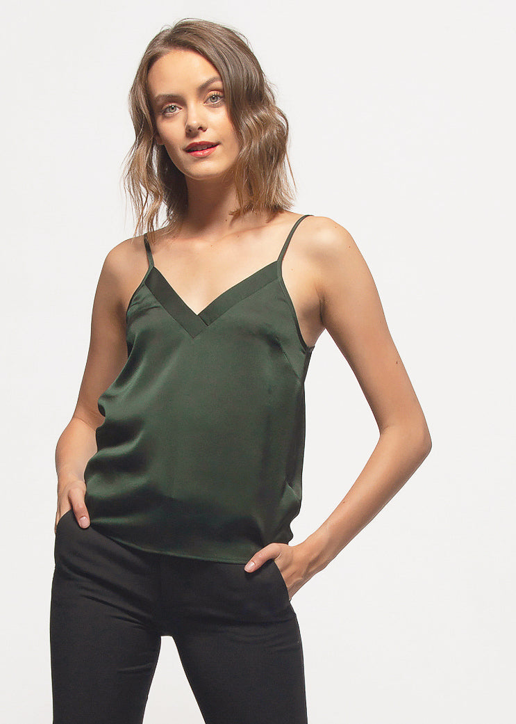 V-neck Satin Camisole in Hunter Green by Shop at Konus