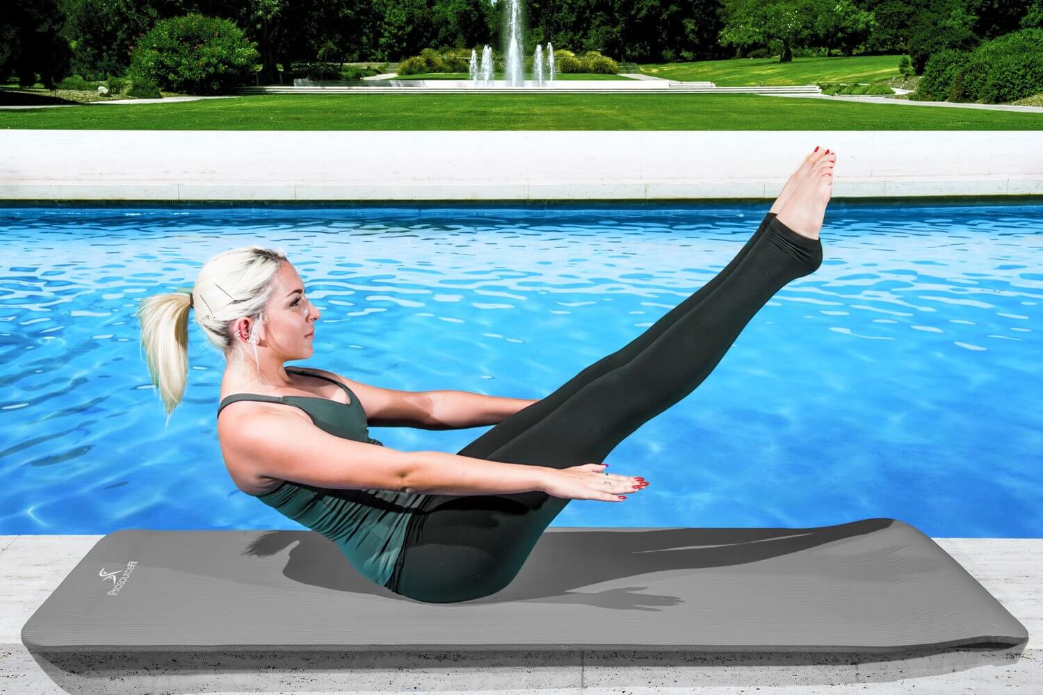 Is your yoga or Pilates mat work tough on your joints? Reduce pain and perfect your poses with the extra thick yoga and Pilates mat. Made from high-density foam, the large 1/2-inch thick exercise mat is versatile for either practice, providing more cushion for your body so you can focus on your flow and balance, not your discomfort.