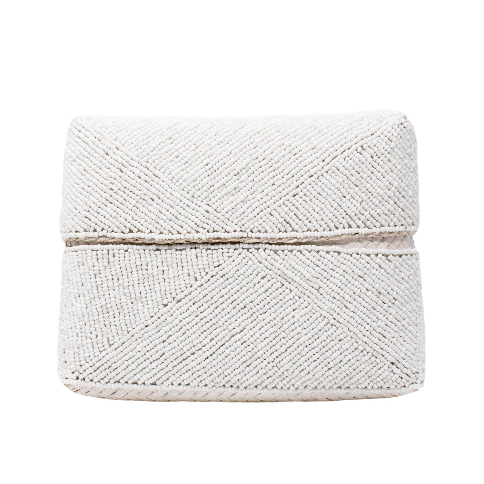 All of our clutches are handwoven and beaded by individual artisans. Due to the fact that each clutch is handmade, the clutches may vary slightly from the online image. The handwoven and beaded pattern is unique to every clutch, this is what makes each POPPY + SAGE clutch such a special treasure knowing your clutch is truly one-of-a-kind!